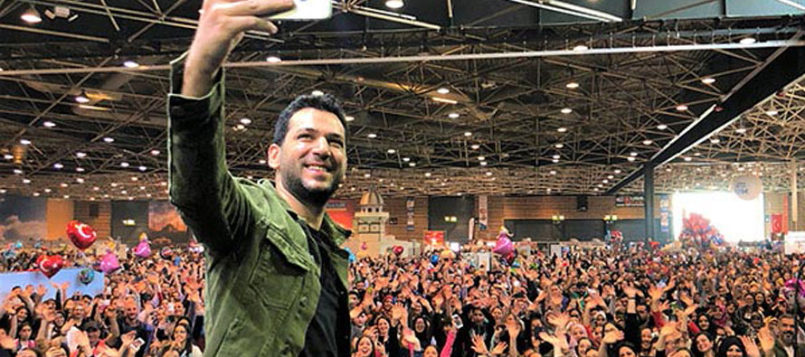 Ödül töreninden sonra hayranlarının yoğun ilgisiyle karşılaşan Murat Yıldırım, Türk ve Arap hayranlarıyla tek tek ilgilendi.