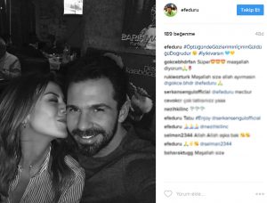 Sevgilisi Bahadır’ın kendisini öperken çektiği fotoğrafını Instagram’da paylaşan Duru, altına şu notu ekleyerek aşkını ilan etti: “Öptüğünde gözlerimin içinin güldüğü doğrudur. İyi ki varsın.”