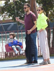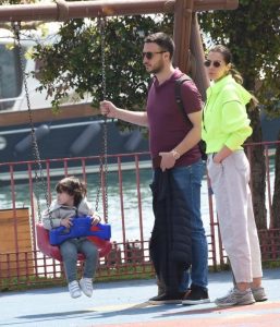 Oğulları Can’ı parka götüren çift, muhabirlerle de ayaküstü sohbet etti.