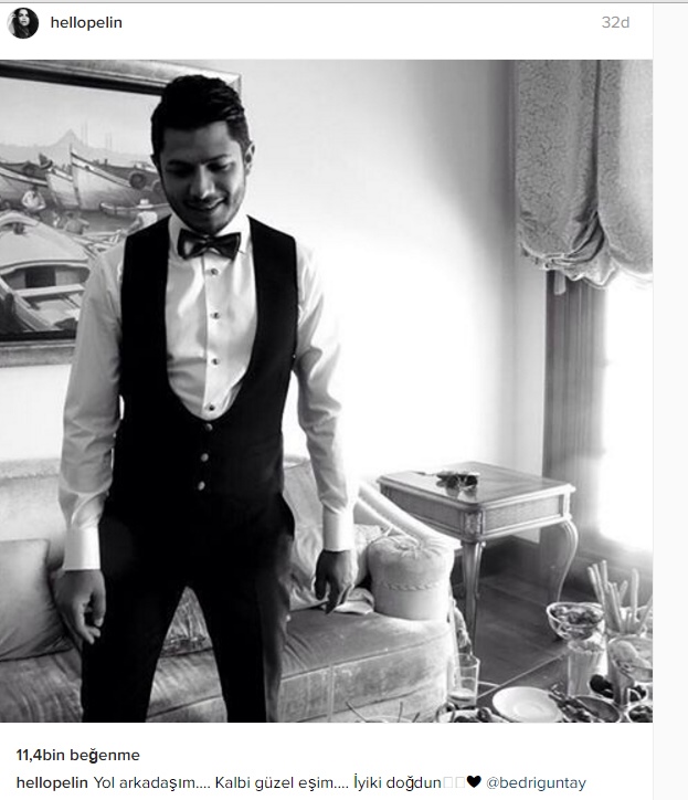 Uncategorized / Magazin Ağustos 28, 2016 PELİN KARAHAN’DAN EŞİNE DUYGUSAL MESAJ Pelin Karahan eşi Bedri Güntay'ın doğum gününü kutladı. Eşinin fotoğrafını Instagram sayfasından paylaşan güzel oyuncu altına şöyle yazdı: "Yol arkadaşım…. Kalbi güzel eşim…. İyiki doğdun??❤️ "