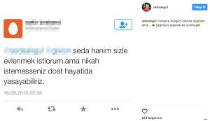 Geçtiğimiz yaz sosyal medya hesabından paylaştığı cesur fotoğraflarla dikkati çeken Seda Akgül, bu defa bir hayranı tarafından kendisine yapılan evlilik teklifini takipçileriyle paylaştı.