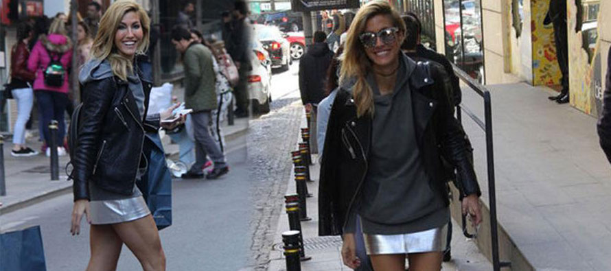 Alışveriş turuna çıkan ünlü model, mini eteği ve kaslı bacaklarıyla meraklı bakışların odağı oldu.