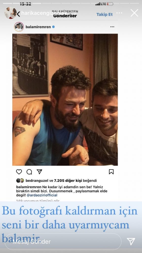 Öziri’nin trafik kazasında ölmeden önce yanında olan yakın arkadaşı iş insanı Cengiz Çolak duruma adeta isyan etti. Balamir Emren’in sosyal medya hesabında Arda Öziri ile olan fotoğrafını kaldırmasını isteyen Çolak “O fotoğrafı kaldırman için seni bir daha uyarmayacağım Balamir” yazdı.