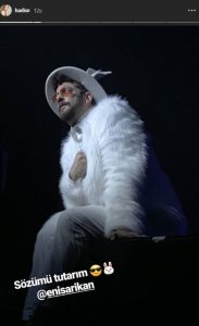 Müzikali izleyenler arasında Hadise de vardı. Ünlü şarkıcı Enis Arıkan’ı etiketlediği fotoğrafı “Sözümü tutarım” notu ile Instagram’da paylaştı…