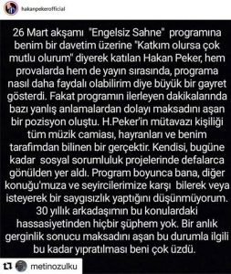 Hakan Peker, bu defa sosyal medya hesabından programın sunucusu ve müzisyen Metin Özülkü’nün o geceyle ilgili açıklamasını paylaştı.