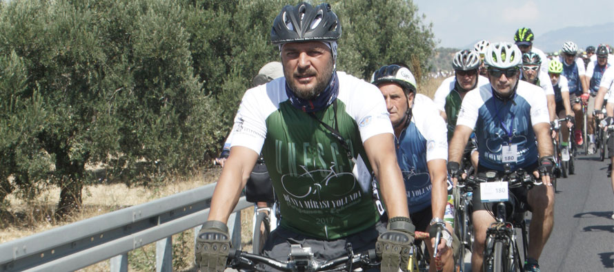 ”UNESCO Dünya Mirası Yolunda Bisiklet Turu 2017″ kapsamında ünlü oyuncular, Bergama’dan Selçuk’a doğru pedal çevirdi.
