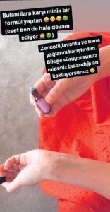 “Zencefil, lavanta ve nane yağlarını karıştırın. Bu karışımı bileğinize sürün. Mideniz bulandığında bileğinizi koklayın.” Kendi adını taşıyan Youtube’daki kanalında da hamilelik süreciyle ilgili tüyolar veren ünlü modelin bu formülü, anne adaylarından büyük ilgi gördü. Yaklaşık 7 aylık hamile olmasına rağmen hala mide bulantısı sorunu yaşadığını belirten ve bu sorununa doğal yöntemlerle çözüm arayan güzel modele takipçilerinden teşekkür mesajları yağdı.