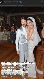 Güzel oyuncu, evlenmeden önce aşırı kilo verdiğini ve o dönem aşırı zayıf olduğunu açıkladı: Aşırı zayıf olduğum ve düğün heyecanıyla gittikçe eridiğim o dönemde, son gelinlik provamda ikaz aldığım doğrudur.